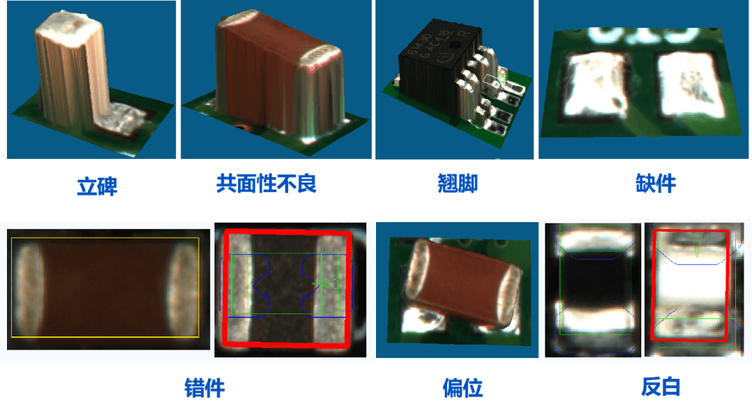 图2 PCB SMT生产线缺陷示例图,来源:深瑞视科技