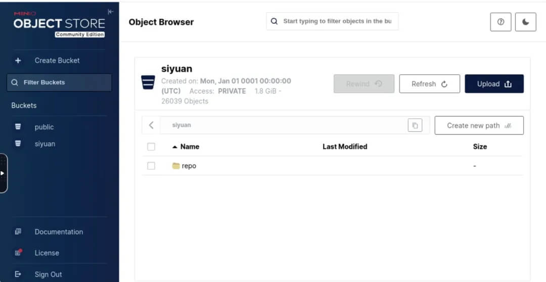 图 MinIO社区版管理后台;图片来源于互联网
